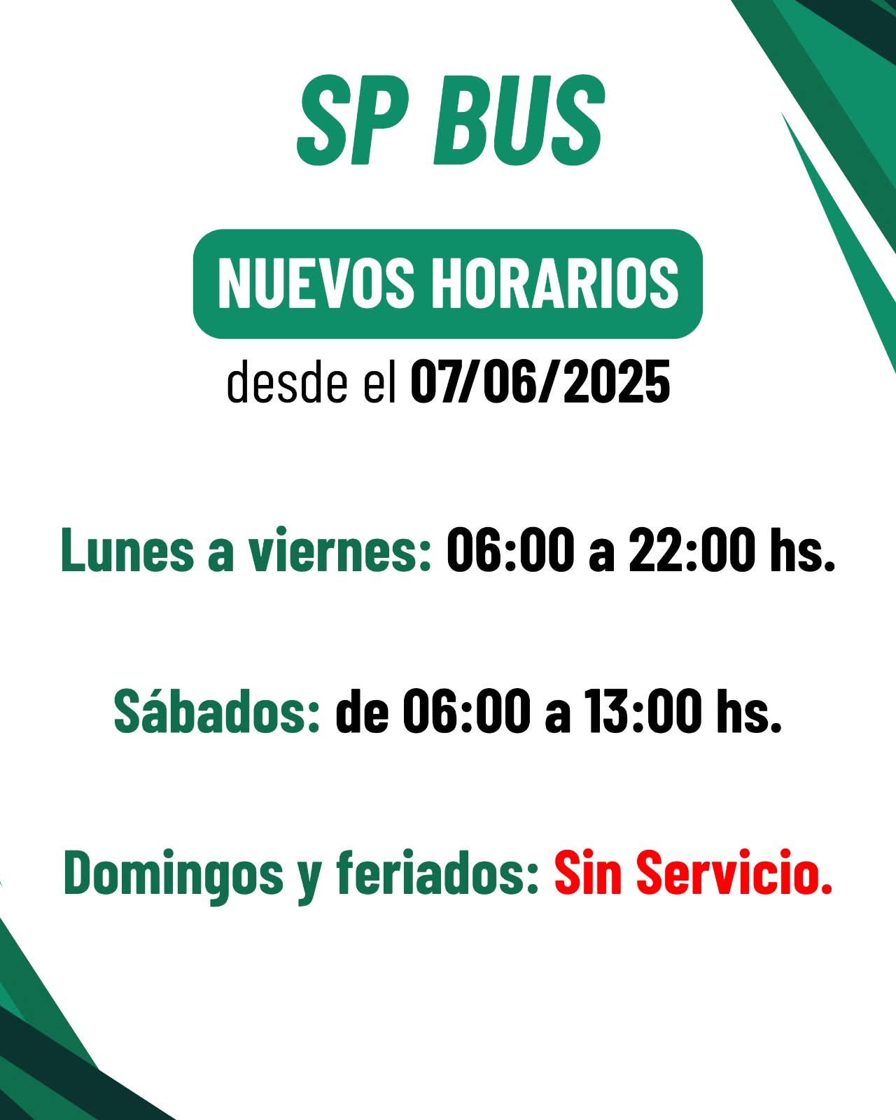 A partir del sábado 7 de junio los ramales A,B y C amplíaron sus recorridos y el servicio de Transporte Urbano de Pasajeros modificará sus horarios de lunes a sábado. En tanto que los domingos y feriados no habrá servicio de transporte urbano.