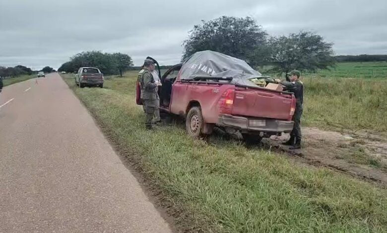 Efectivos de la “Sección Miraflores” dependientes del Escuadrón 1 “Roque Sáenz Peña”, se encontraban desplegados sobre la Ruta Provincial Nº 9 en el acceso de la localidad chaqueña de Castelli, cuando detuvieron la marcha de una camioneta que se dirigía hacia Misión Nueva Pompeya (Chaco) para su respectivo control documentológico. Al momento de la requisa, los uniformados visualizaron en la caja del rodado dos cajas envueltas en bolsas de residuo negras, disimuladas entre cajones de verduras y frutas, lo que llamó la atención de los gendarmes.